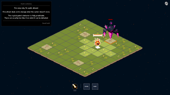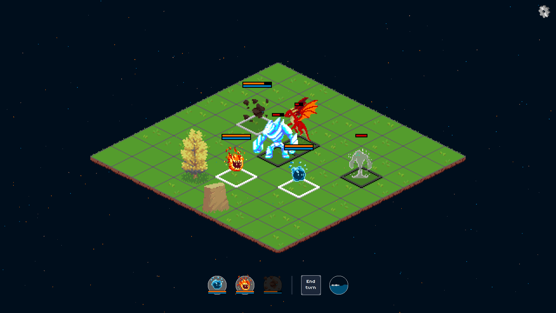 Wisps of the Elements is a turn-based, grid-based, roguelite. Each element has a special effect: Fire and Stone aim at controlling the board, while Air and Water get bonuses and penalties depending on the tide cycle.